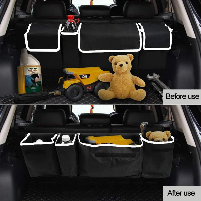 Are you tired of always having a cluttered and messy car? Do you struggle to find space for all your belongings during trips or errands? Look no further, because we have the perfect solution for you - the Car Organizer! Made from durable Oxford cloth and available in sleek black, this organizer is designed to make your life easier.
